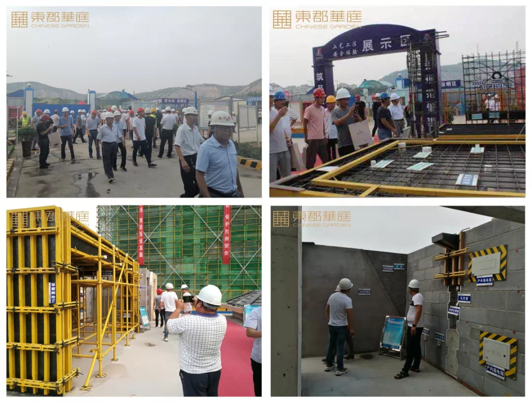 随后建设局领导以及各参与观摩会的企业工程专家一同对东郡华庭项目现场进行了参观,标准化的安全设备设施、干净整洁的工地现场、以及高标准的工地安全、工艺展示体验区等等获得了参会专家们的一致认可。