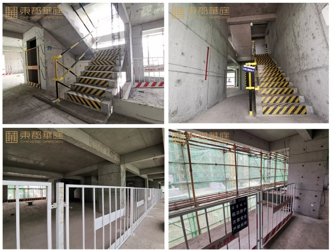 楼层临边防护采用成品定型化防护栏杆,定型化的可拆卸楼梯栏杆