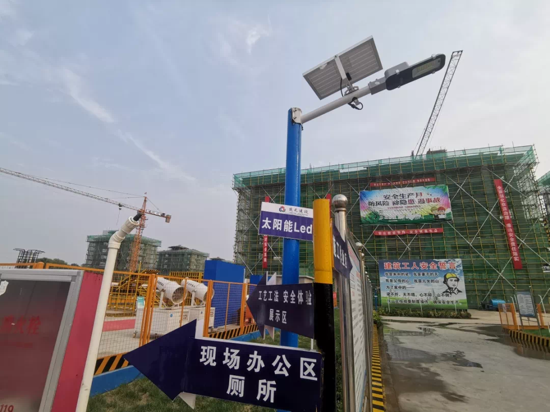 主路两侧设置太阳能灯,有效实现节能节电,成为工地创新亮点。
