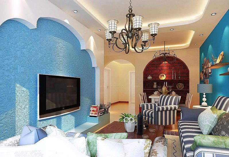 比如客厅的肌理可略显粗旷些,线条明朗、用色大胆、图案抽象的墙面可以降低居室的拘束感。